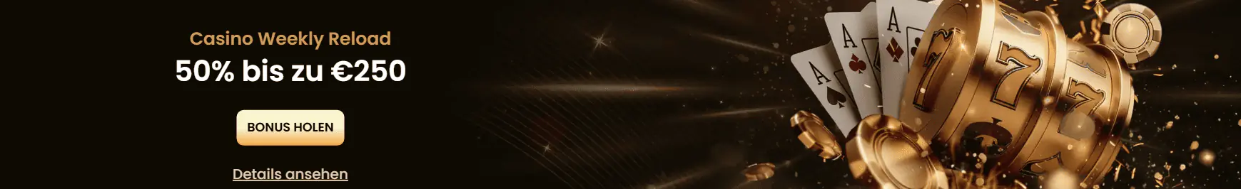 Casino Weekly Reload | 50% bis zu €250 | Für alle Spieler |